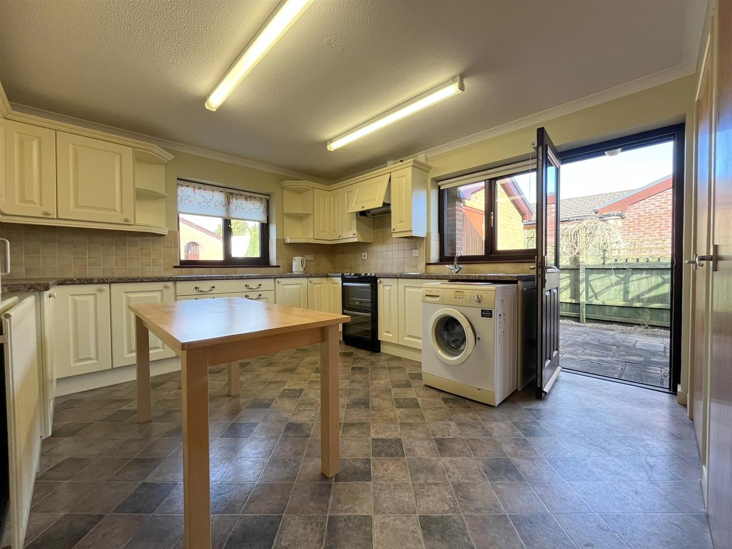Window to side and further window and half-glazed door giving accesss to the enclosed rear yard area.