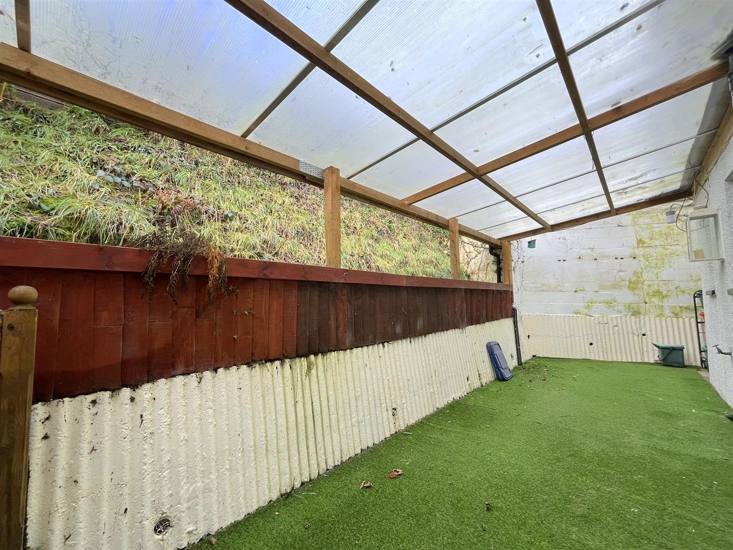 An elevated walkway leads to the rear garden and up to the Summerhouse with its' terraced decked seating area and BBQ spot. The SUMMERHOUSE occupies a delightful spot adjoining open fields at the rear and. it currently provides the vendors with a space for watching television, undertaking crafts and hobbies and also for socialising. An extensive seating area is located outside and there is suitable space for a BBQ. It has super views over Llanidloes to the mid Wales hills beyond. The lower deck area is also accessible for wheelchair users.