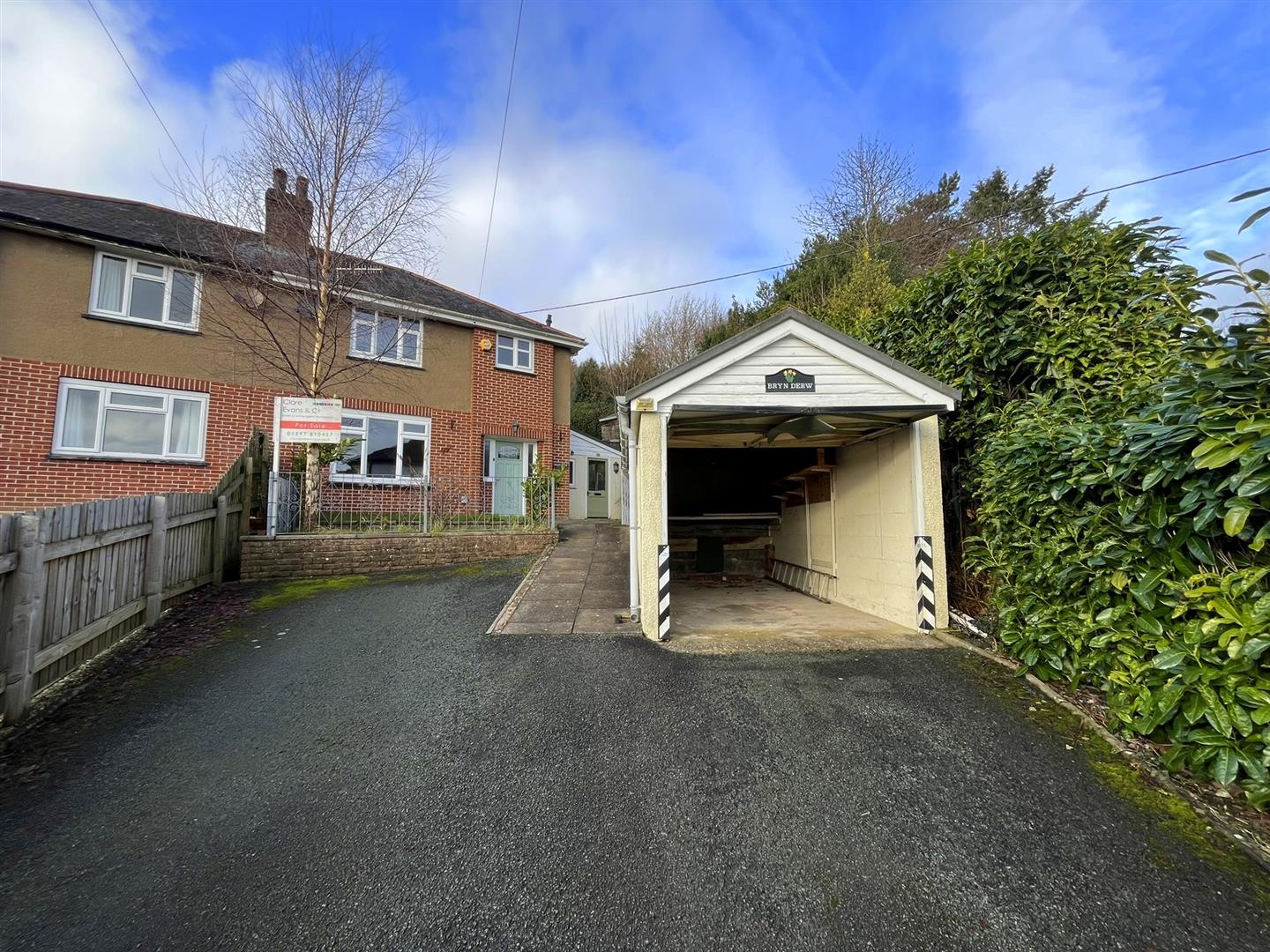 The property is approached over a short tarmacadam driveway that leads to a detached single Garage, and also to a parking area with space for a couple of vehicles.