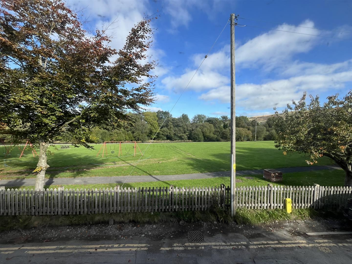 The property has a large slabbed area to the side with a terraced balcony access via an open tread metal staircase that rises to the pleasant seating area with fabulous views over the riverside park and to the town and hills beyond.