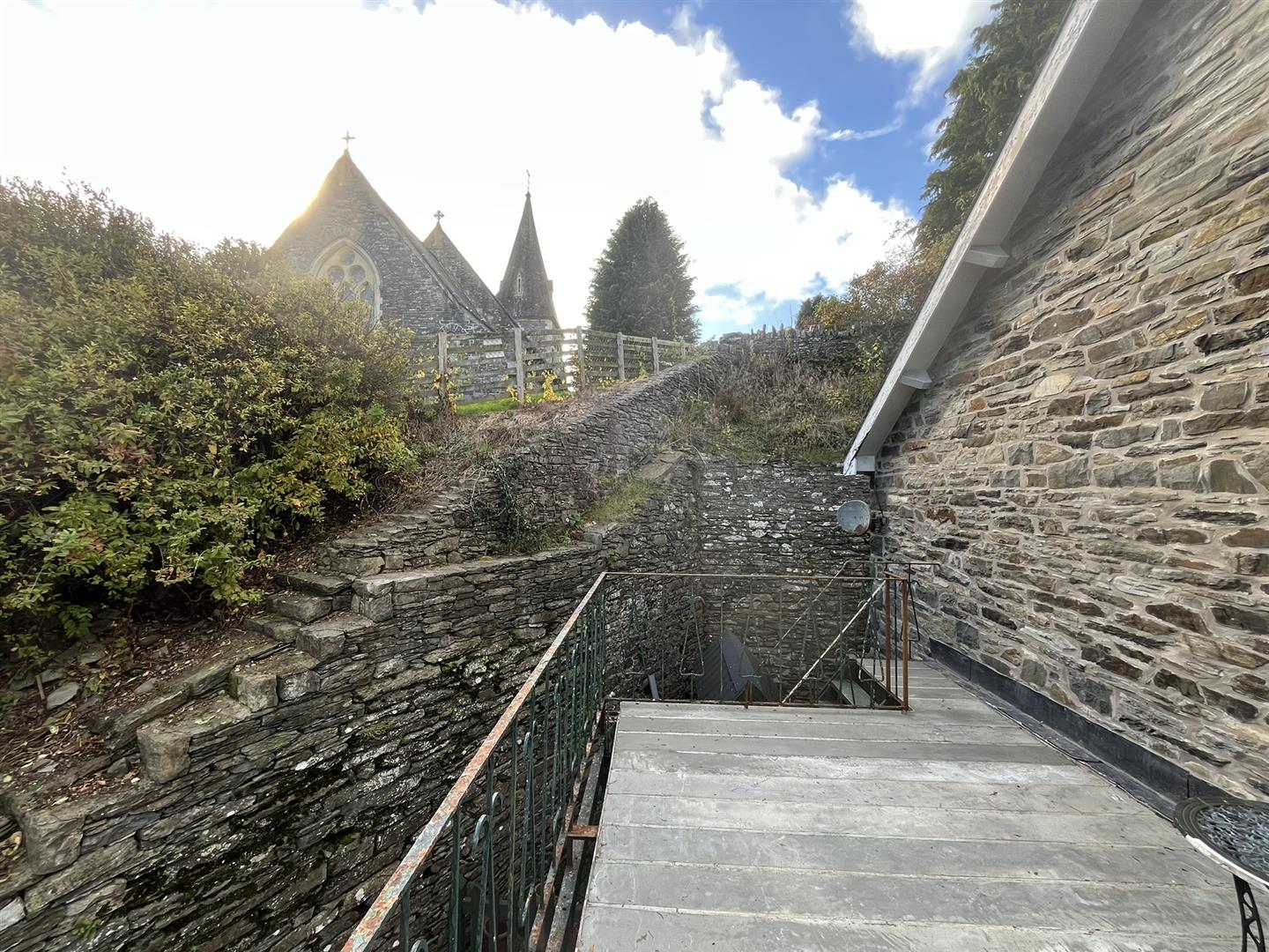To the rear of the property there is a stone wall, behing which sites the beautiful church of St Bride's whose spite can be seen .