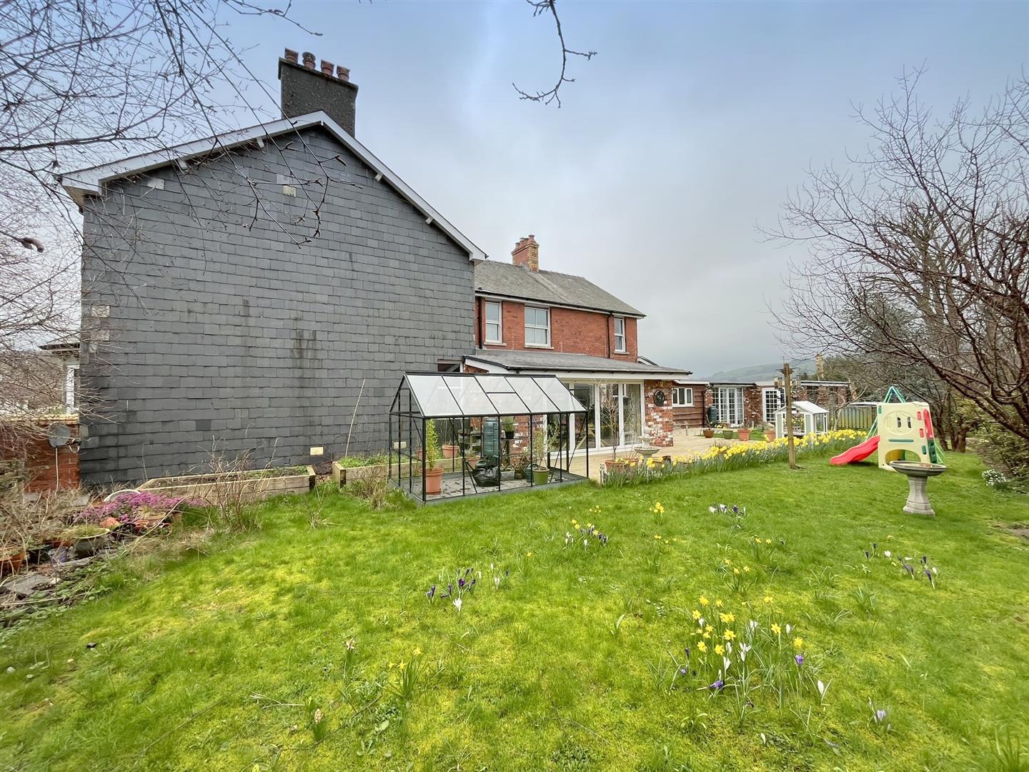 The largest aspect of the property occupies a superb south-west facing position and makes the most of the views over Rhayader towards the Elan Valley hills and Cambrian Mountains beyond. This garden provides an attractive lawned area with flower beds and borders, interspersed with mature shrubs and specimen trees and includes apple, pear and cherry trees.