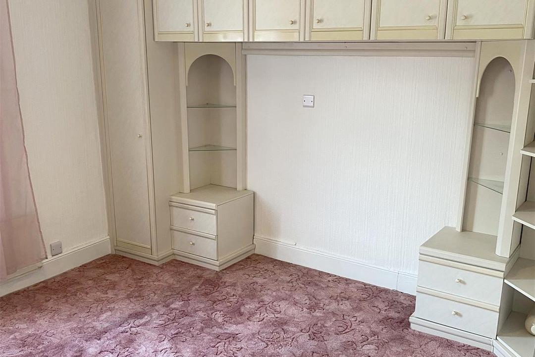 Carpeted, original sash window to front, built in cupboards and matching freestanding wardrobes