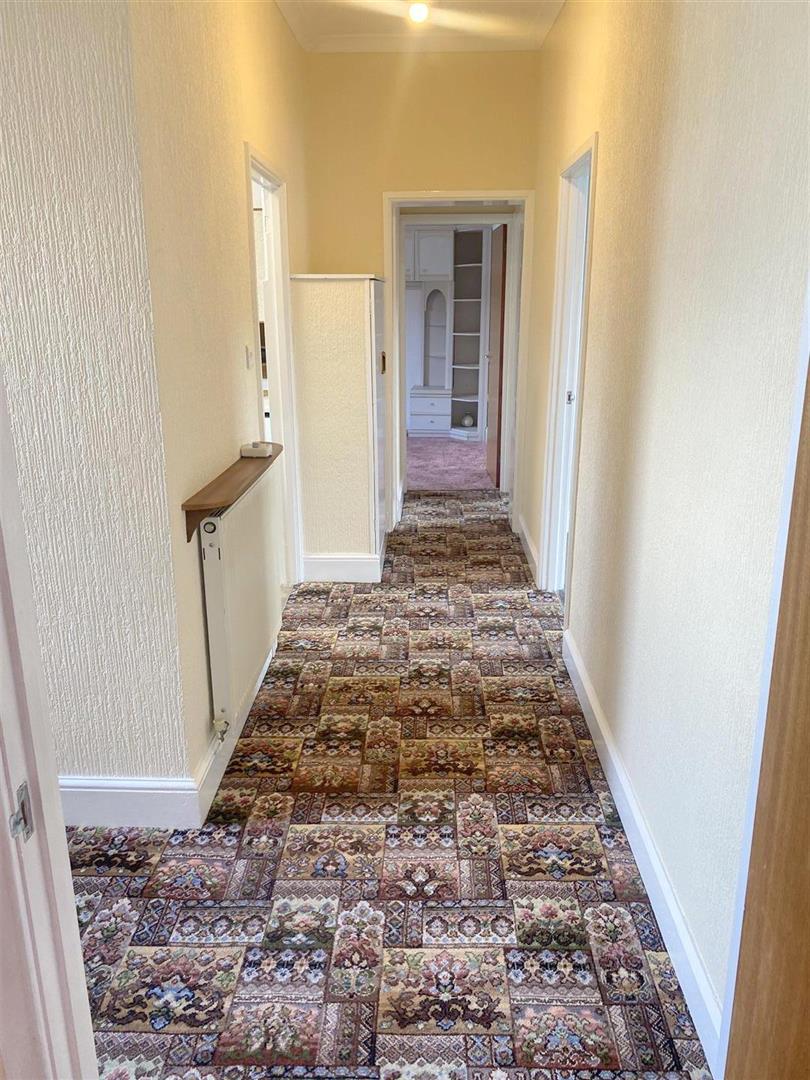 Original feature tiles. Remainer of hall and stairs carpeted. Worcester gas boiler. Original sash window with obscured glass, glazed door to large carpeted landing area.