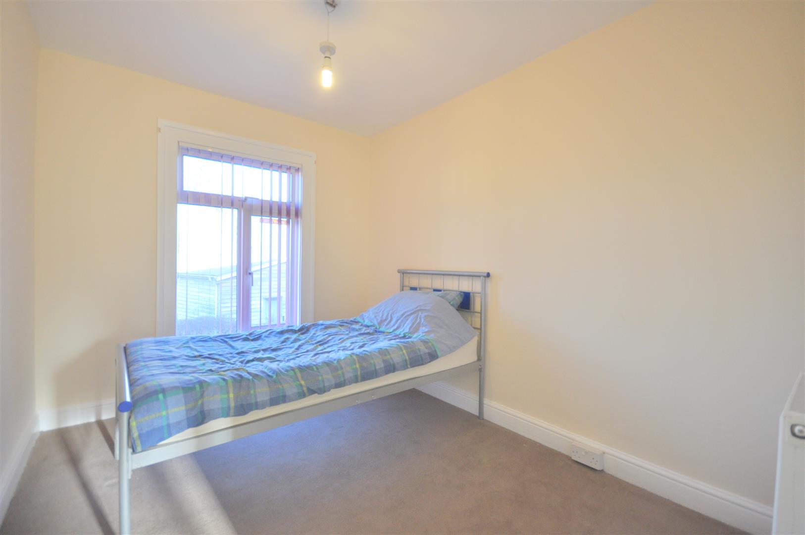 Fitted carpet. Radiator. Window with fitted vertical blinds to front.