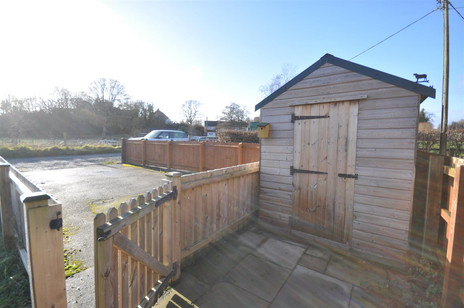 A wood garden shed is also included.